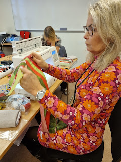 men vi sydde på....sen säger Eva att detta var baksidan????? VA!!!! sitter vi och syr en så fin baksida????